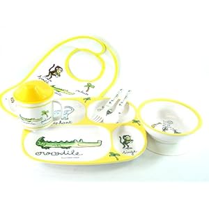 This is a nice set of baby dishes and a better value than purchasing the pieces seperately.Click Here to see more reviews about: 6 Piece Set Baby Cie La Jungle: Jungle Yellow Melamine Colorful Melamine Dinnerware with wording