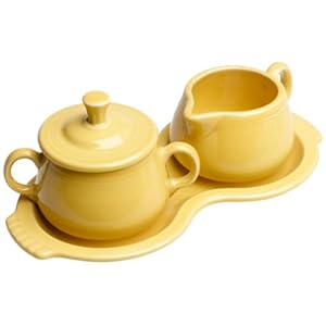 Fiesta Covered Creamer and Sugar Set with Tray manufactured by The Homer Laughlin China Company.America's largest domestic producer of dinnerware, and the sole manufacturer of all Fiesta dinnerware.All Fiesta pieces are Microwave safe, Oven-proof, Dishwasher safe, Freezerproof, Lead-Free, and Made in America with the implementation of many green practices.The very durable glaze is great for everyday use.Fiesta as a pattern has stood the test of time, and is typically passed down from one generation to the next.We have kept the pattern constant through the years so that you can count on us to be here when you decide to expand or change your collection.New pieces and colors are added every so often to keep things interesting.Currently, Fiesta is the most collected dinnerware in America.
