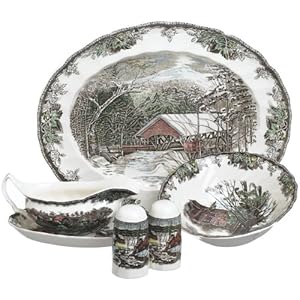 The only reason I knocked off a star is because they are made in China, and the pattern used to be made in England (I have older pieces I got only a few years ago that have Made in England stamped right in).But, that being said, the pieces look great, and outside of where they were made, I am not disappointed in them.Click Here to see more reviews about: Johnson Brothers Friendly Village 6 - Piece Completer Set