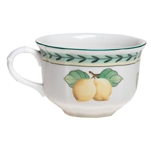 This pretty little French Garden Fleurence (tea cup and companion) saucer lends everyday elegance for my herbal teas, hot cocoas, sipping chocolates and any combination thereof. From microwave to table to dishwasher, this vitrified porcelain has been making the rounds for many months since arriving, with no hint of tiring whatsoever. The quality is top notch and the light-weight feel in the hand is pleasing to the senses. I couldn't be happier with this delightful line as my luxurious daily ware. Villeroy and Boch products have earned the generally rare distinction of frequently bringing a feeling of richness to my many calming moments with a beautiful cup of something hot or warm and delicious (or even just simply healthy in the way of warm milky drinks). Thanks again to Amazon for another affordably extraordinary treat brought right to my door!