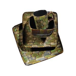 Dinnerware in warm tones to infuse your table with character and richness. It???s unique beauty originates from traditional reactive glazing techniques that ensure no two pieces are exactly alike. Sophisticated and soothing, the deep, earthy hues coordinate with many colors and table settings. Bold designs for the bold at heart.Traditional finishing techniques produce differences in color, size and texture, ensuring no two pieces are exactly alike.Bandera Dinnerware Setincludes four of each of the following:10.5-in. Dinner Plates8.5-in Salad/ Dessert Plates6-in. Soup/ Salad Bowls12-oz. Mugs
