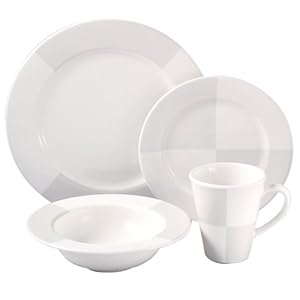Nautica Arctic White 16-Piece dinnerware set features large, adjacent blocks of white and gray which are refreshingly clean and bright.This 16-piece dinnerware set includes a service for four.The set includes four of each - 11 1/4" dinner plates, 8" salad plates, 16-ounce soup/cereal bowl and 13-ounce mug.