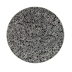 Purchased to accompany my other solid matte black dinnerware.They make a fun and slightly whimsical addition to the set table.Also purchased the dip bowls in the collection.They are good quality, lighter weight stoneware and stack well. Was initially concerned that the curl pattern may be difficult to clean but the over-glaze of the slightly depressed curl makes it easy.The salad plates are a great size for bagles in the morning or sandwich at noon.Am seriously considering the soup bowls and the dinner plates, however the is no image of the plates available - pattern all over (my preference) or on edge only?Also have my eye on one of the serving bowls.Good quality, fair price, with free shipping - I'm happy!