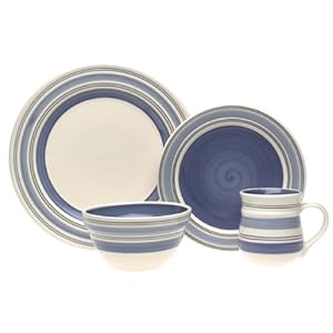 Rio Blue introduces a whole new way to look at stripes. Relaxed blue stripes take turns shifting positions and changing from wide to lean while continually maintaining their order on this exuberant dinnerware. In Rio Blue, the classic styling of blue stripes on cream is updated for today.
