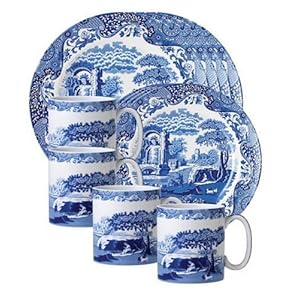 Spode Blue Italian 12 Piece SetProduct Description: Spode Blue Italian was made possible by Joshiah Spode's perfection of blue under-glaze printing in 1784.This collection is a tepestry of blue scene's and figure's. Today we have an extensive collection of microwave and dishwasher safe dinnerware, giftware and accessorie's. This 12 piece set contain's 4 each Dinners Plate's, Salad Plate's and Mug's.
