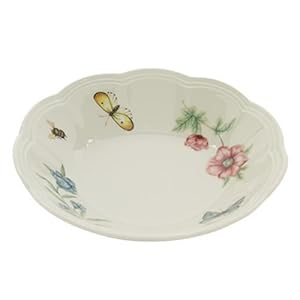 Lenox Butterfly Meadow Bone Porcelain Fruit BowlProduct Description: Gently scalloped edges and graceful garden artistry distinguish this serving bowl of Lenox fine porcelain. The serene nature scene includes a butterfly, of course, and a buzzing bumblebee.