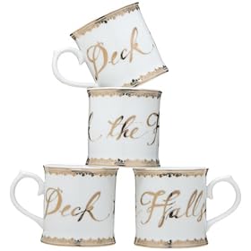 This celebratory, classic design in 24 karat gold never goes out of style. Each serving plate is wreathed by a simple message that communicats the goodwill of the season: "We Wish You A Merry Christmas" or "Deck the Halls." Paired with the embellished mugs, Tis The Season provides a sophisticated aproach to holiday dining.