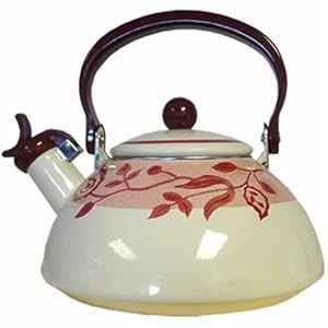 Corelle Coordinates 2-1/5-Quart Whistling Teakettle, GypsumProduct Description: Enjoy pink-on-cream in this licensed Corelle pattern called Gypsum. This 2.2 quart teakettle is porcelain-on-steel with a heat-resistant handle. Featuring a harmonic hum whistle, you can use it on both gas and electric cooktops.